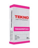 Kar ış t ı rma: Yapışmayı engelleyici her türlü maddeden arındırılmış, temiz bir kap içerisine normal çevre sıcaklığından alınan 3,5 – 4,5 lt temiz, berrak su konulur. Su ile dolu kap içine toz halde,25 kg torbada olan TEKNOREP 300, boşaltılır. Düşük devirli bir karıştırıcı ile topaksız homojen bir karışım elde edilinceye kadar karıştırılır. Karışım süresi minimum 5 dk olmalıdır. İşlem sonunda elde edilen harç 3 dk dinlendirilip, tekrar 2 dk homojen hale gelinceye kadar karıştırılmalıdır.Malzeme reaksiyona girdikten sonra tekrar su katıp karıştırılmamalıdır.